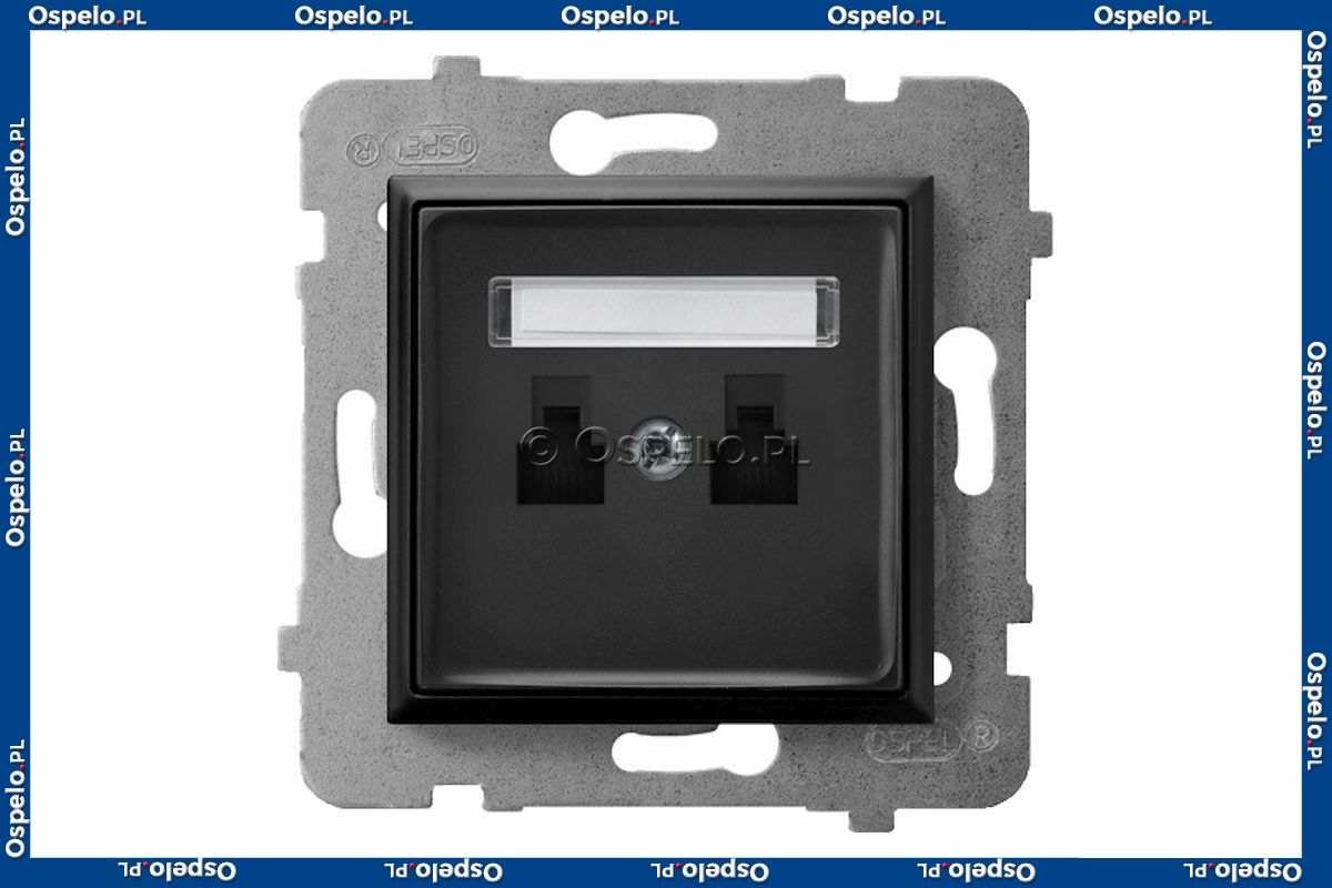 GPT-2UN/m/33 Gniazdo telefoniczne podwójne niezależne Czarny Metalik Ospel Aria - Widok z przodu
