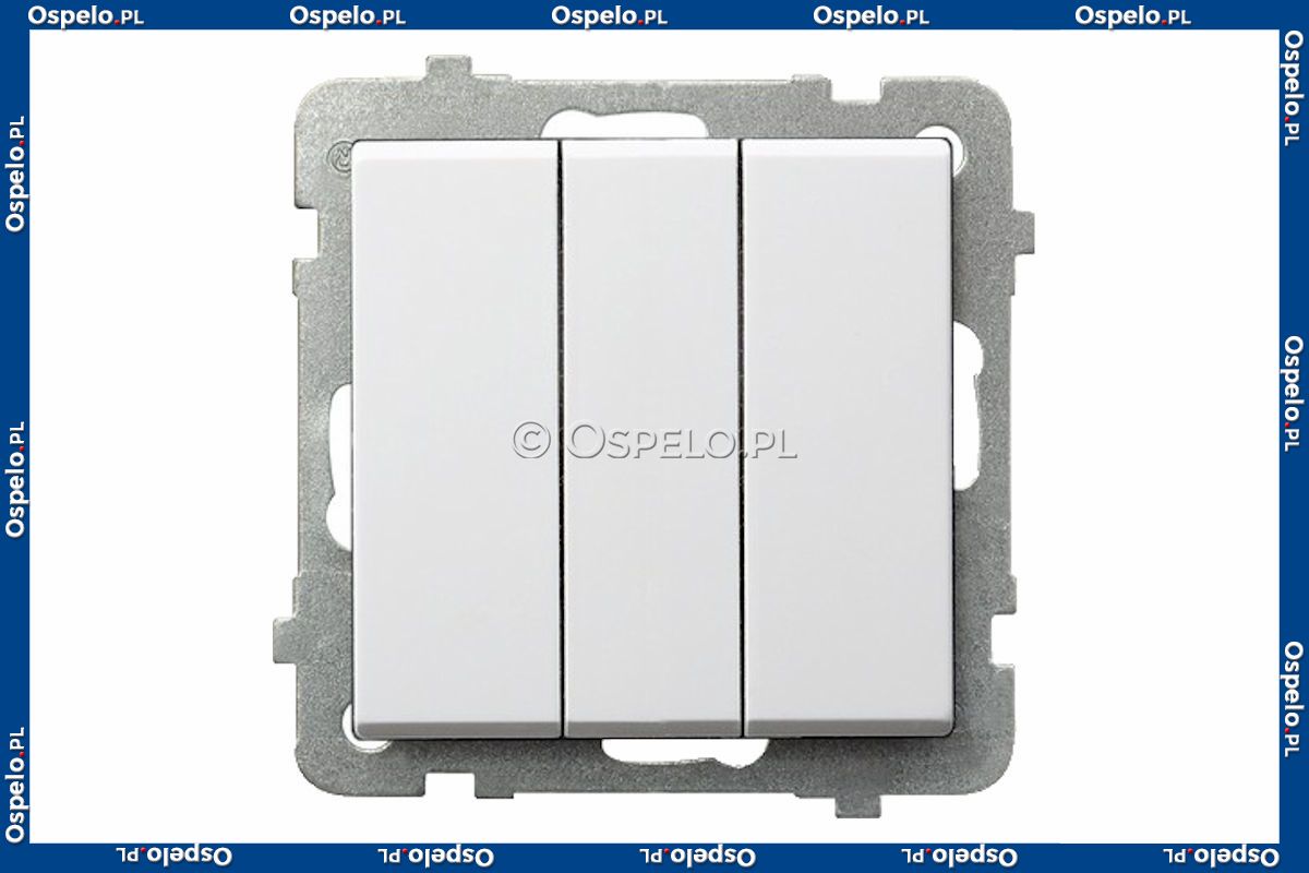 ŁP-13R/m/00 Łącznik potrójny 10A (Szybkozłącza) Biały Ospel Sonata - Widok z przodu