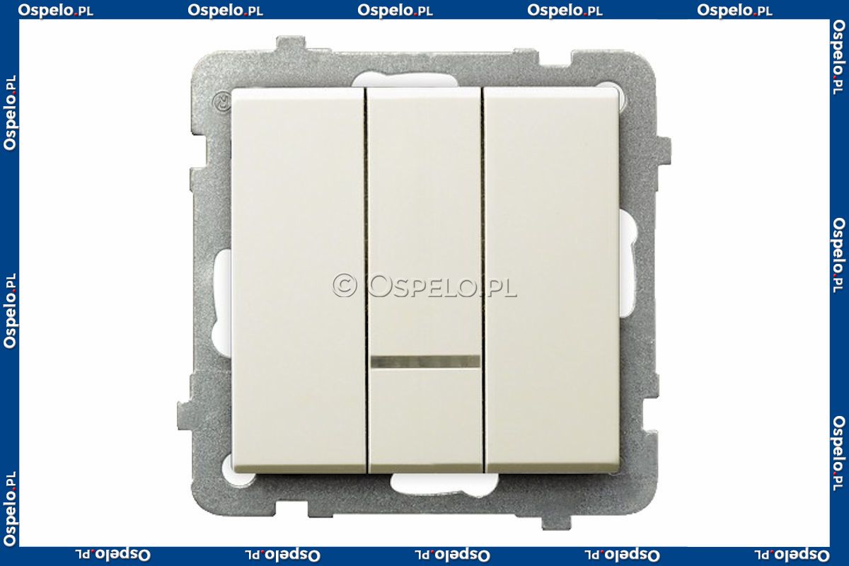ŁP-13RS/m/27 Łącznik potrójny z podświetleniem w kolorze Pomarańczowym 10A (Szybkozłącza) Ecru Ospel Sonata - Widok z przodu