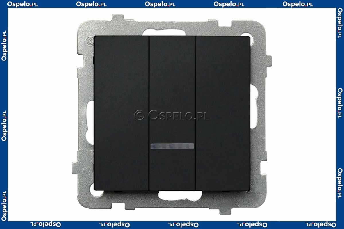 ŁP-13RS/m/33 Łącznik potrójny z podświetleniem w kolorze Niebieskim 10A (Szybkozłącza) Czarny Metalik Ospel Sonata - Widok z przodu