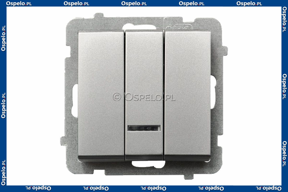 ŁP-13RS/m/38 Łącznik potrójny z podświetleniem w kolorze Niebieskim 10A (Szybkozłącza) Srebro Mat Ospel Sonata - Widok z przodu