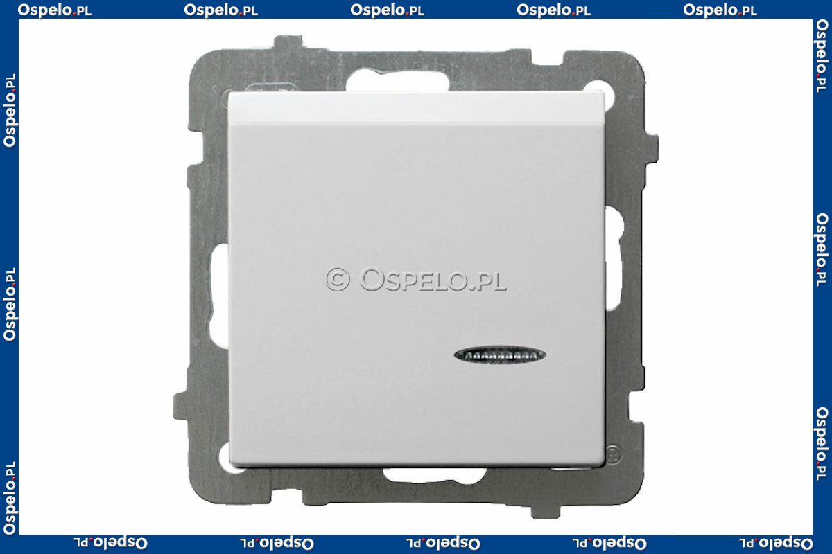 ŁP-15GS/m/00 Łącznik hotelowy z podświetleniem w kolorze Pomarańczowym 16A (Zaciski śrubowe) Biały Ospel As - Widok z przodu