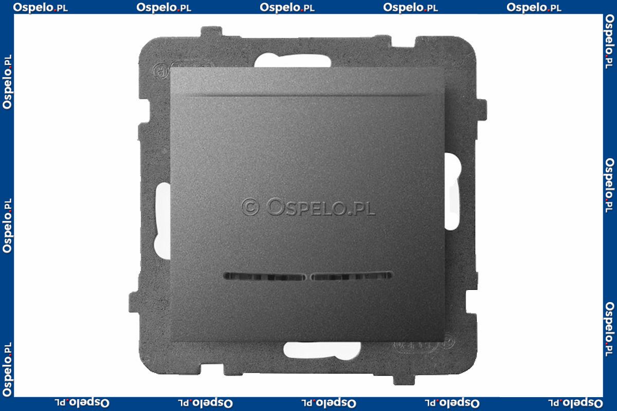 ŁP-15US/m/70 Łącznik hotelowy z podświetleniem w kolorze Pomarańczowym 16A (Zaciski śrubowe) Szary Mat. Ospel Aria - Widok z przodu