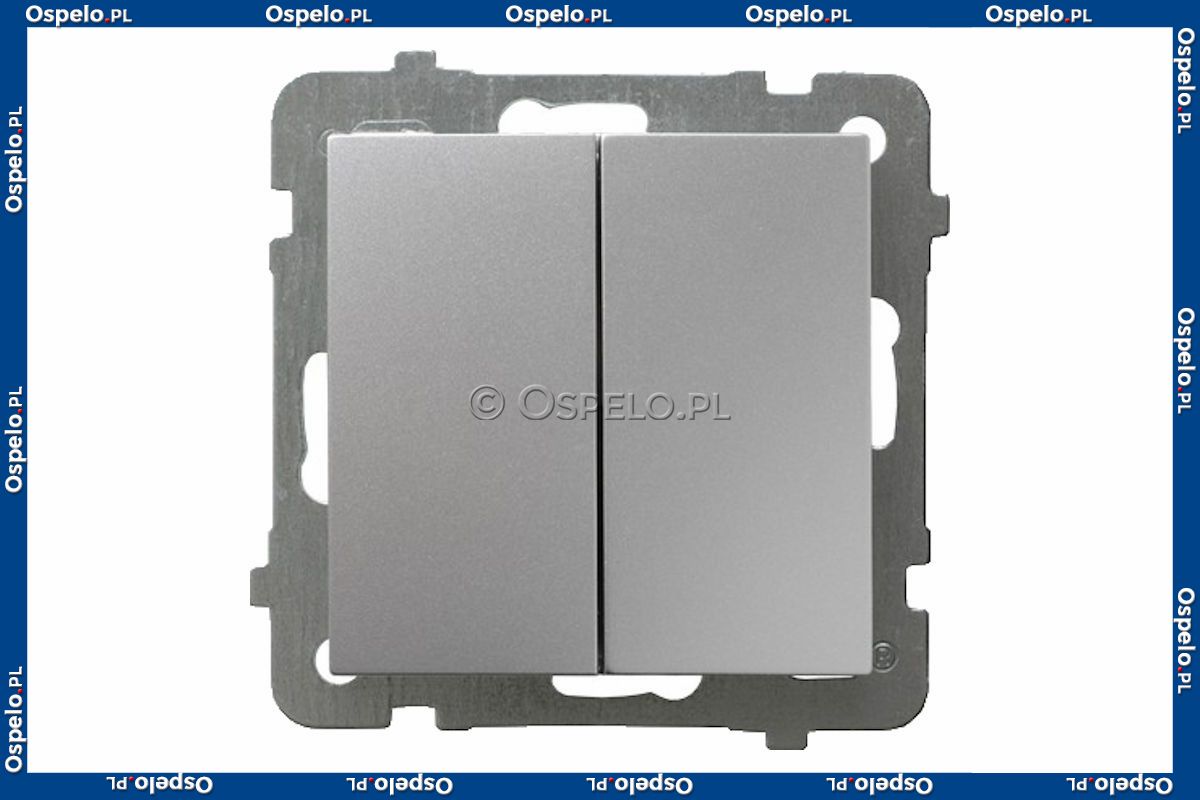 Przycisk zwierny podwójny 10A (Zaciski śrubowe) Srebro Ospel As