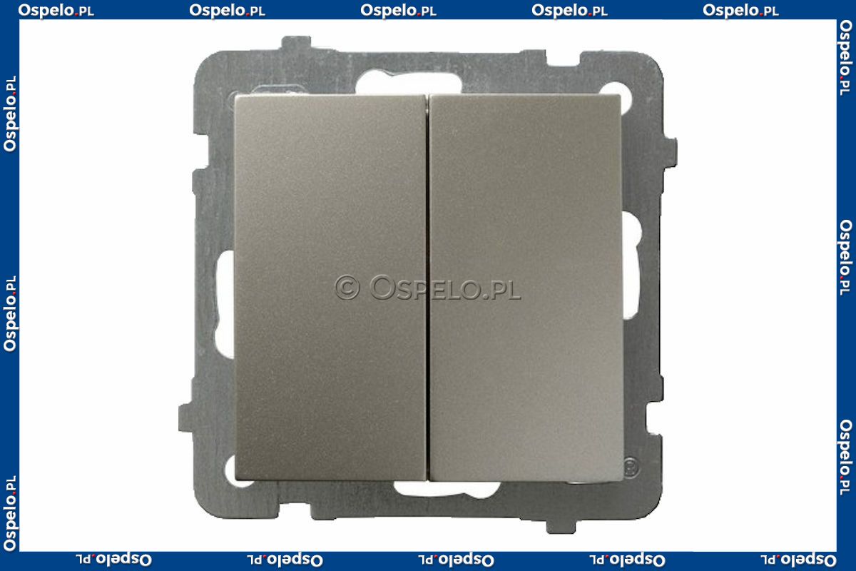 ŁP-17G/m/45 Przycisk zwierny podwójny 10A (Zaciski śrubowe) Satyna Light Ospel As - Widok z przodu
