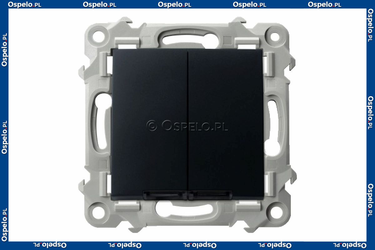 ŁP-17ZS/m/33 Łącznik zwierny podwójny z podświetleniem w kolorze Niebieskim 10A (Szybkozłącza) Czarny Metalik