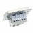 Szkic zdjęcia gniazdka elektrycznego obok którego znajdują się szczegółowe dane techniczne produktu-
