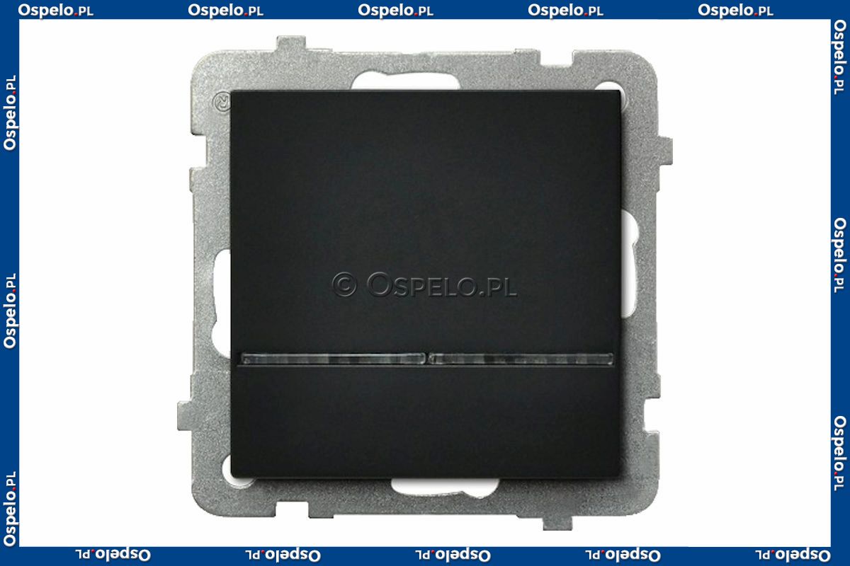 ŁP-1RS/m/33 Łącznik pojedynczy z podświetleniem w kolorze Niebieskim 16A (Szybkozłącza) Czarny Metalik Ospel Sonata - Widok z przodu