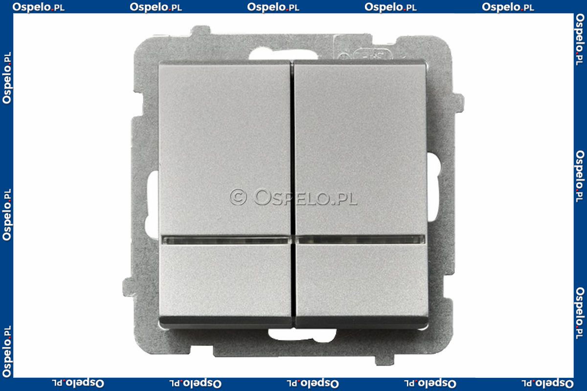 ŁP-2RS/m/38 Łącznik podwójny z podświetleniem w kolorze Niebieskim 16A (Szybkozłącza) Srebro Mat Ospel Sonata - Widok z przodu