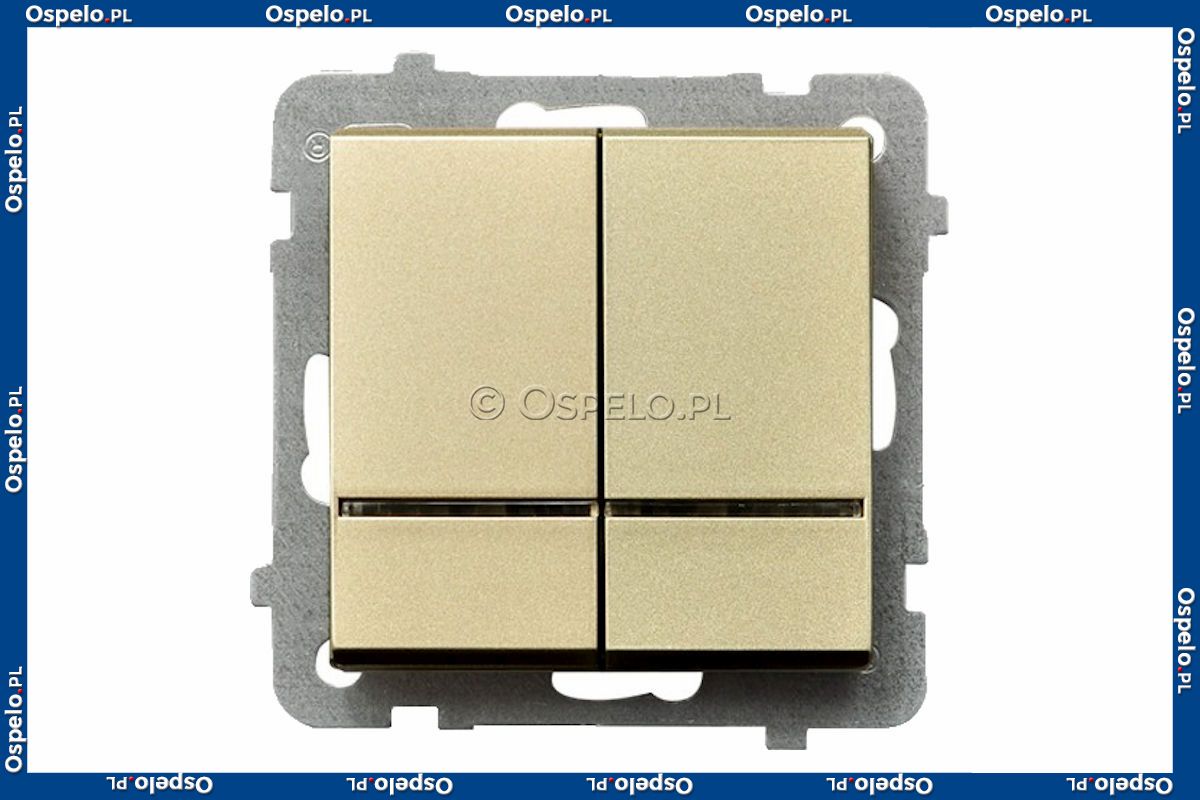 ŁP-2RS/m/39 Łącznik podwójny z podświetleniem w kolorze Niebieskim 16A (Szybkozłącza) Szampański Złoty Ospel Sonata - Widok z przodu