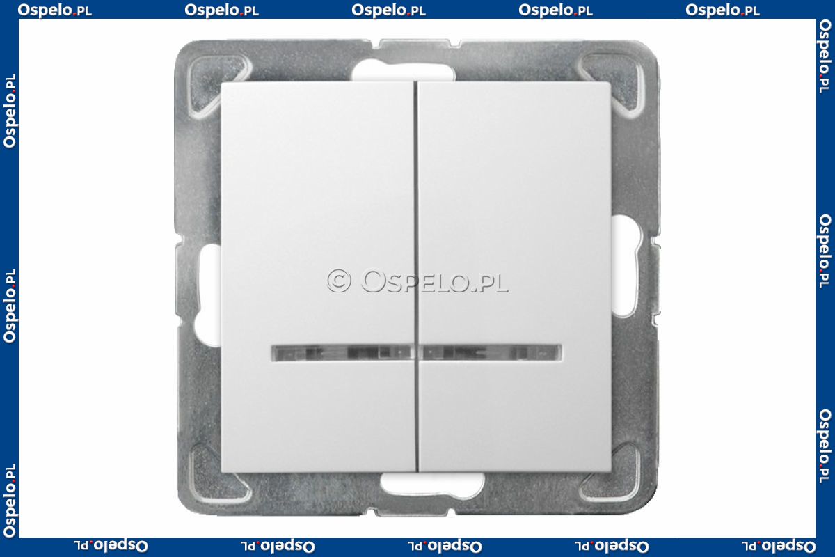 Przedstawiamy nowoczesny łącznik podwójny z podświetleniem w kolorze pomarańczowym 16A ŁP-2YS/m/00 dostępny w eleganckim białym kolorze z serii IMPRESJA. Ten wszechstronny łącznik wyposażony jest w dwa klawisze, umożliwiając łączenie dwóch niezależnych obwodów oświetleniowych za pomocą jednego wspólnego zasilania. To doskonałe rozwiązanie do zarządzania oświetleniem, szczególnie przydatne w przypadku żyrandoli podzielonych na dwie strefy.