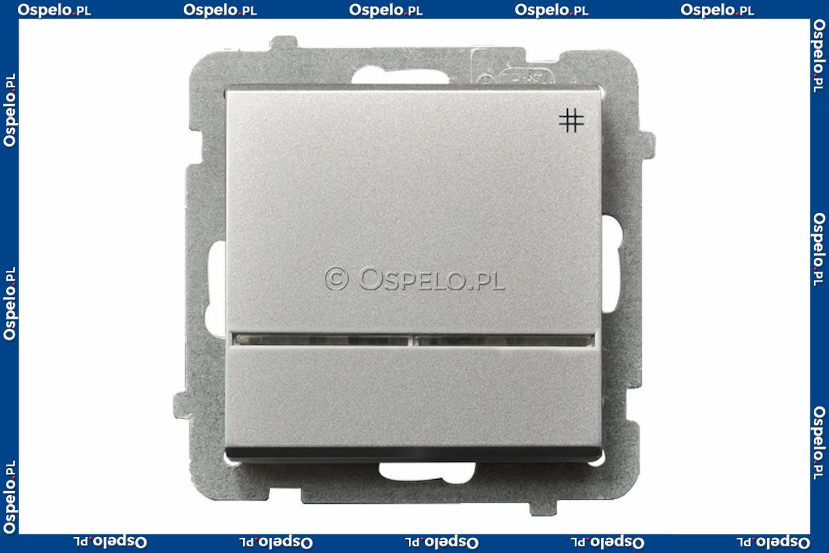 ŁP-4RS/m/38 Łącznik krzyżowy z podświetleniem w kolorze Niebieskim 16A (Szybkozłącza) Srebro Mat Ospel Sonata - Widok z przodu