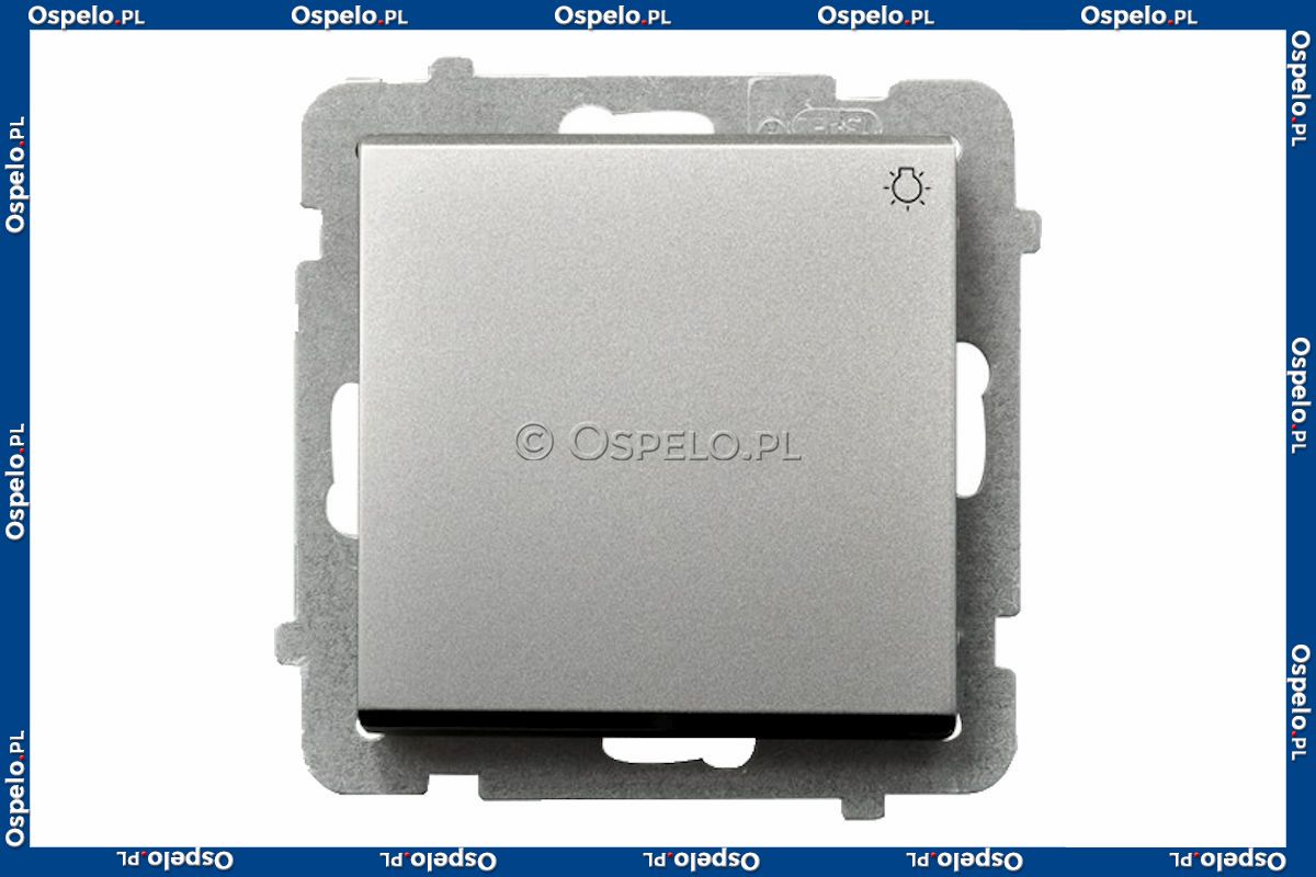 ŁP-5R/m/38 Przycisk zwierny z symbolem światła 10A (Szybkozłącza) Srebro Mat Ospel Sonata - Widok z przodu