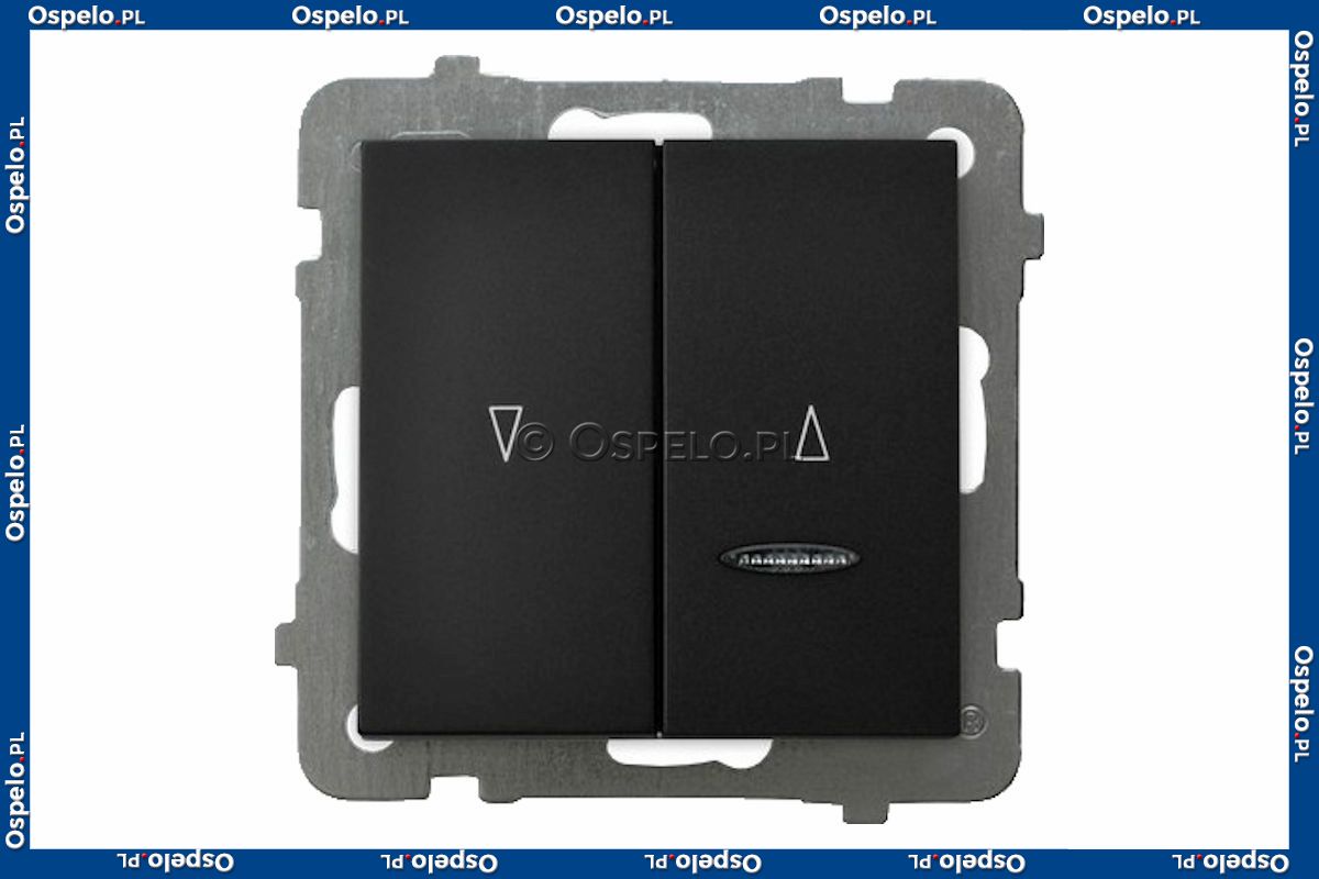 ŁP-7GS/m/33 Przycisk żaluzjowy z podświetleniem w kolorze Niebieskim 10A (Zaciski śrubowe) Czarny Metalik Ospel As - Widok z przodu