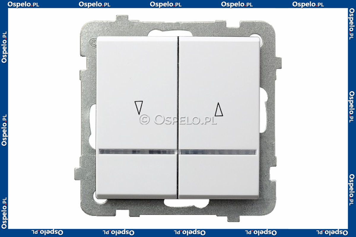 ŁP-7RS/m/00 Przycisk żaluzjowy z podświetleniem w kolorze Pomarańczowym 10A (Szybkozłącza) Biały Ospel Sonata - Widok z przodu