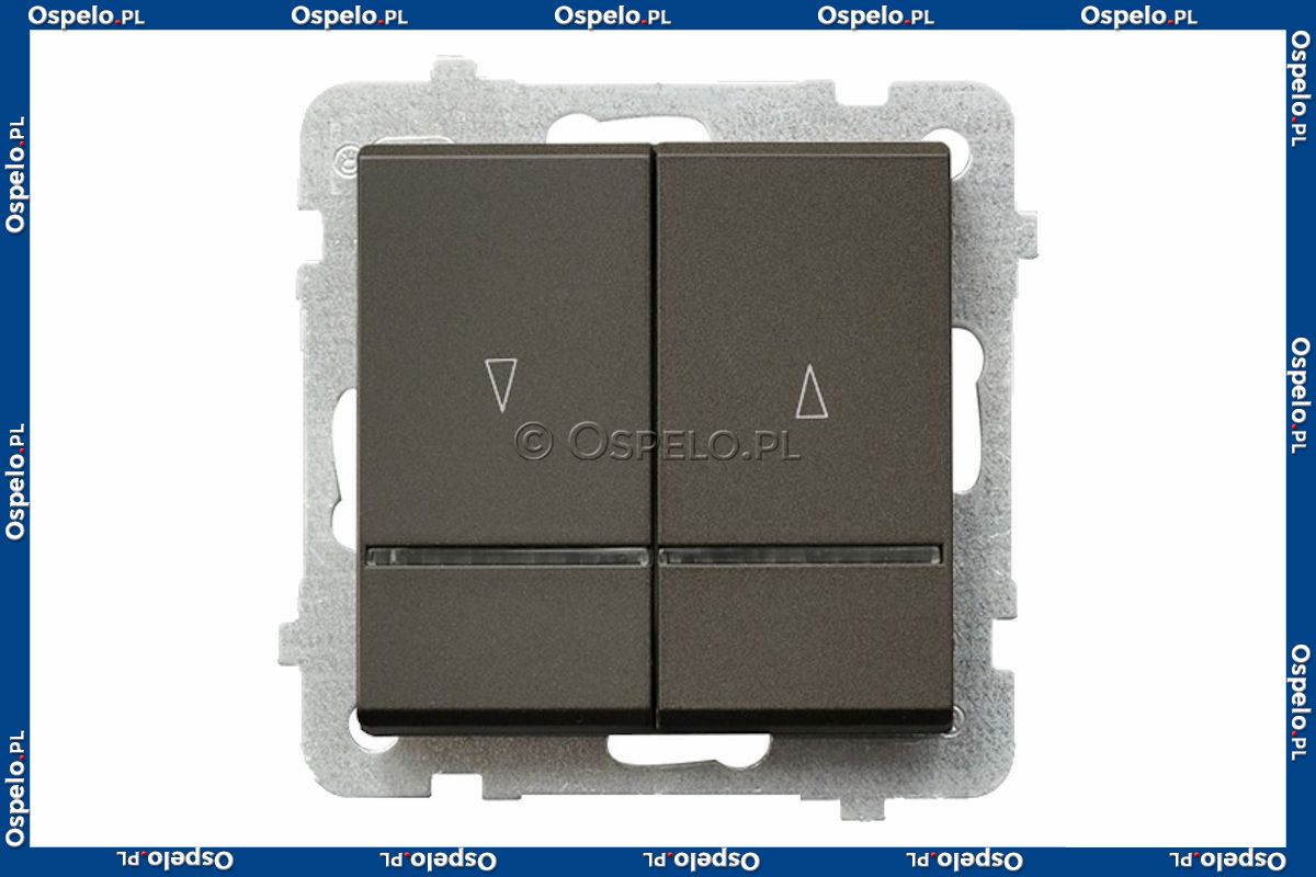 ŁP-7RS/m/40 Przycisk żaluzjowy z podświetleniem w kolorze Niebieskim 10A (Szybkozłącza) Czekoladowy Metalik Ospel Sonata - Widok z przodu