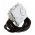 Szkic zdjęcia gniazdka elektrycznego obok którego znajdują się szczegółowe dane techniczne produktu-