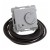 Szkic zdjęcia gniazdka elektrycznego obok którego znajdują się szczegółowe dane techniczne produktu-